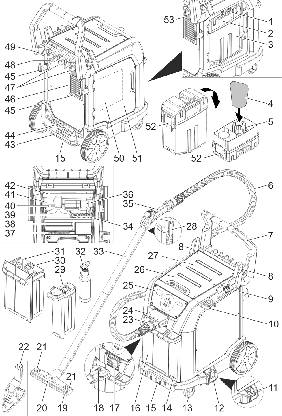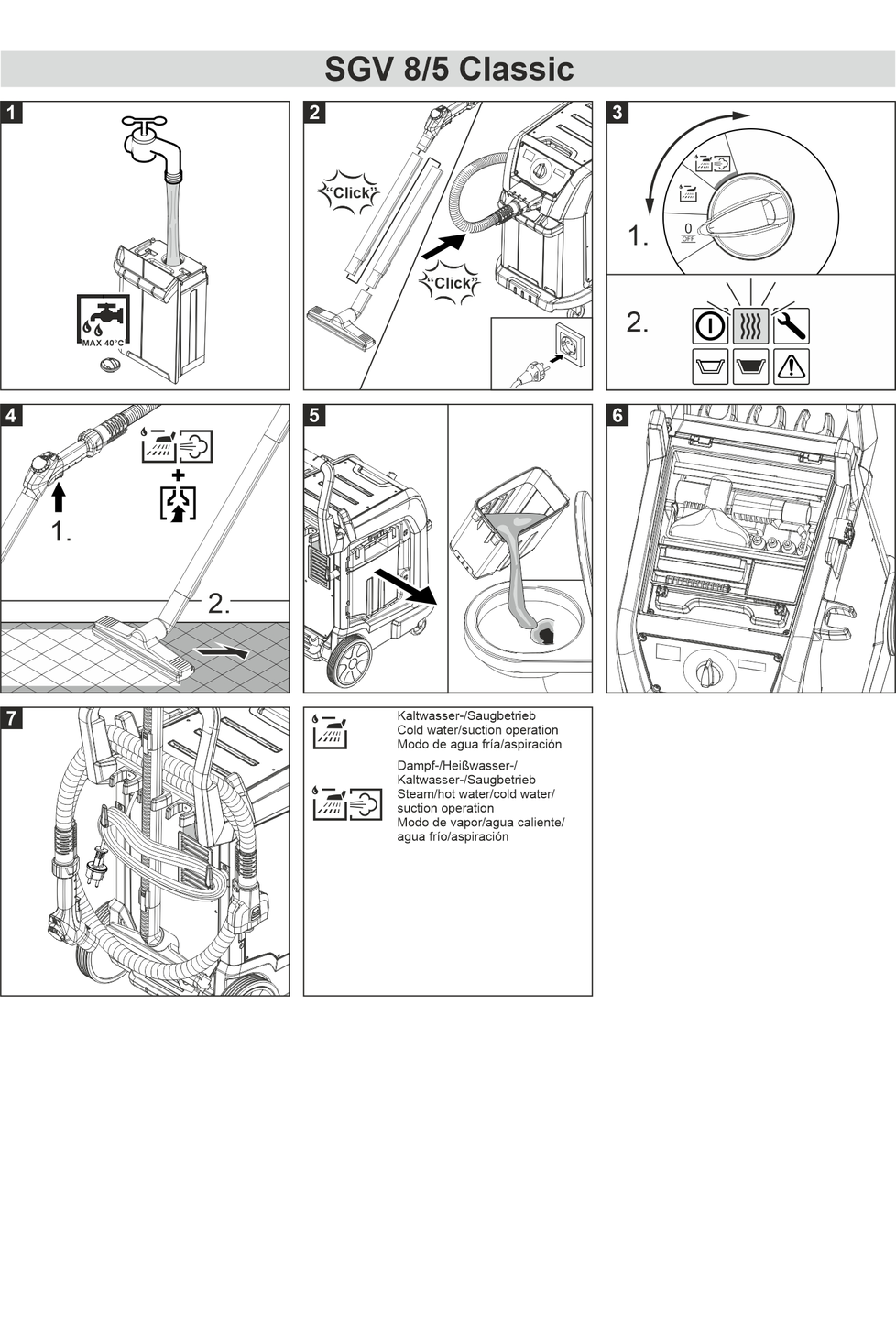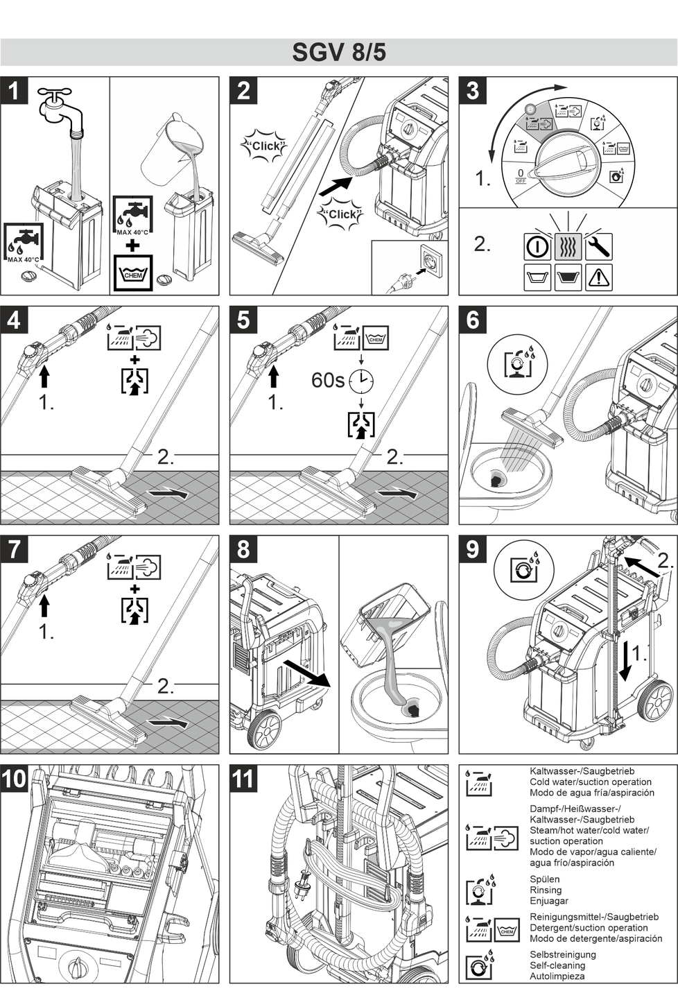 Do not use the device for vacuuming up dusts that are harmful to health.The device is intended for generating steam and sucking up spilled liquids and solid particles as described in these operating instructions.