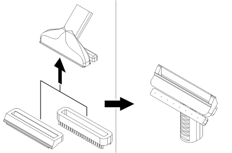 Connecting accessories: Connect the handle or the steam suction pipe to the desired accessory. Push the parts into each other until the accessory lock engages.