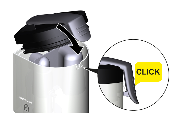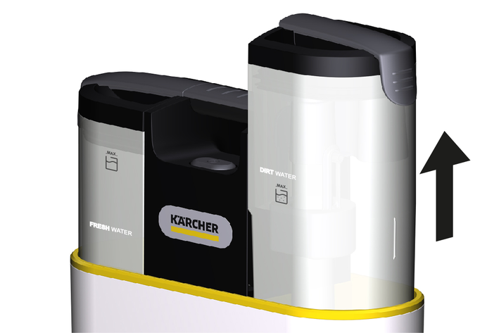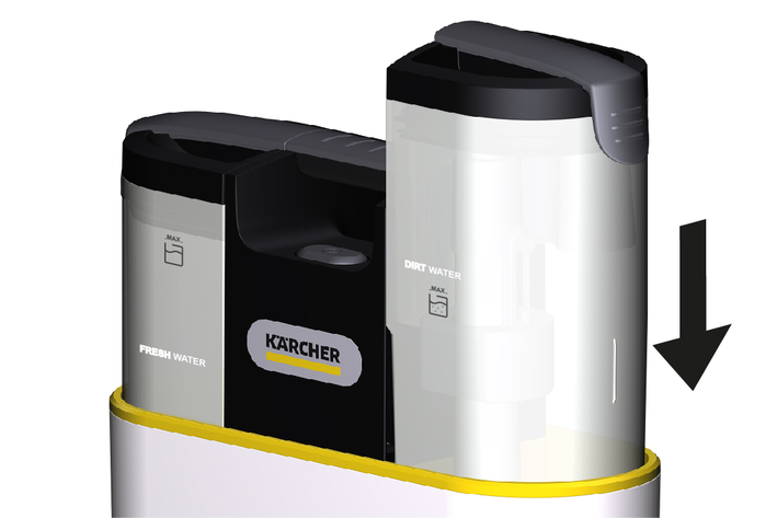 Check the waste water tank for a correct fit. Press the tank down vertically.