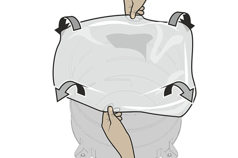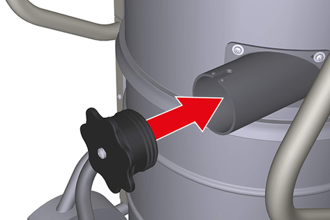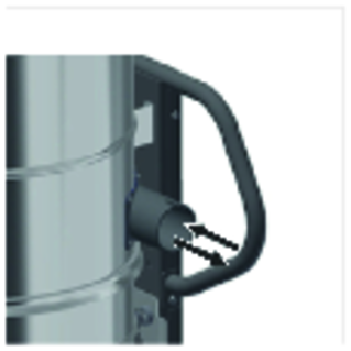 The vacuum material container can be lifted by cranes at the handle. The maximum load for crane transport is 50 kg. Be aware of the permissible total weight of the waste container when transporting it with a crane and adhere to the applicable legal regulations.Insert the dust bag: