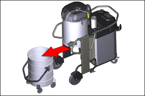 Non-hazardous wet substances and dust can be directly vacuumed into the waste container without a dust bag.