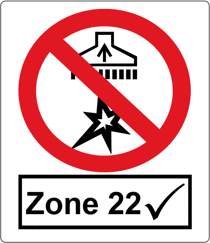 In the event of an emergency, switch off the device and unplug the mains plug. | Do not vacuum any sources of ignition! Suitable for vacuuming inflammable dusts of dust explosion classes in zone 22. |