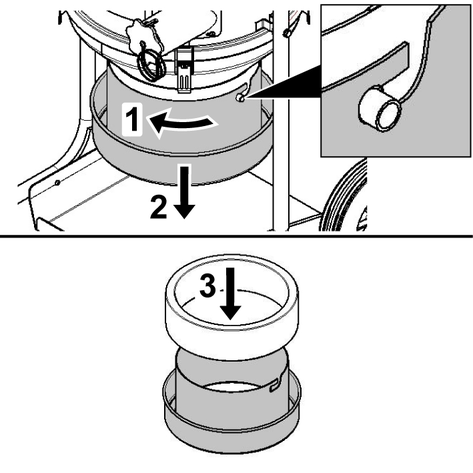 Insert the suction hose (not included in the scope of delivery) into the suction connection.