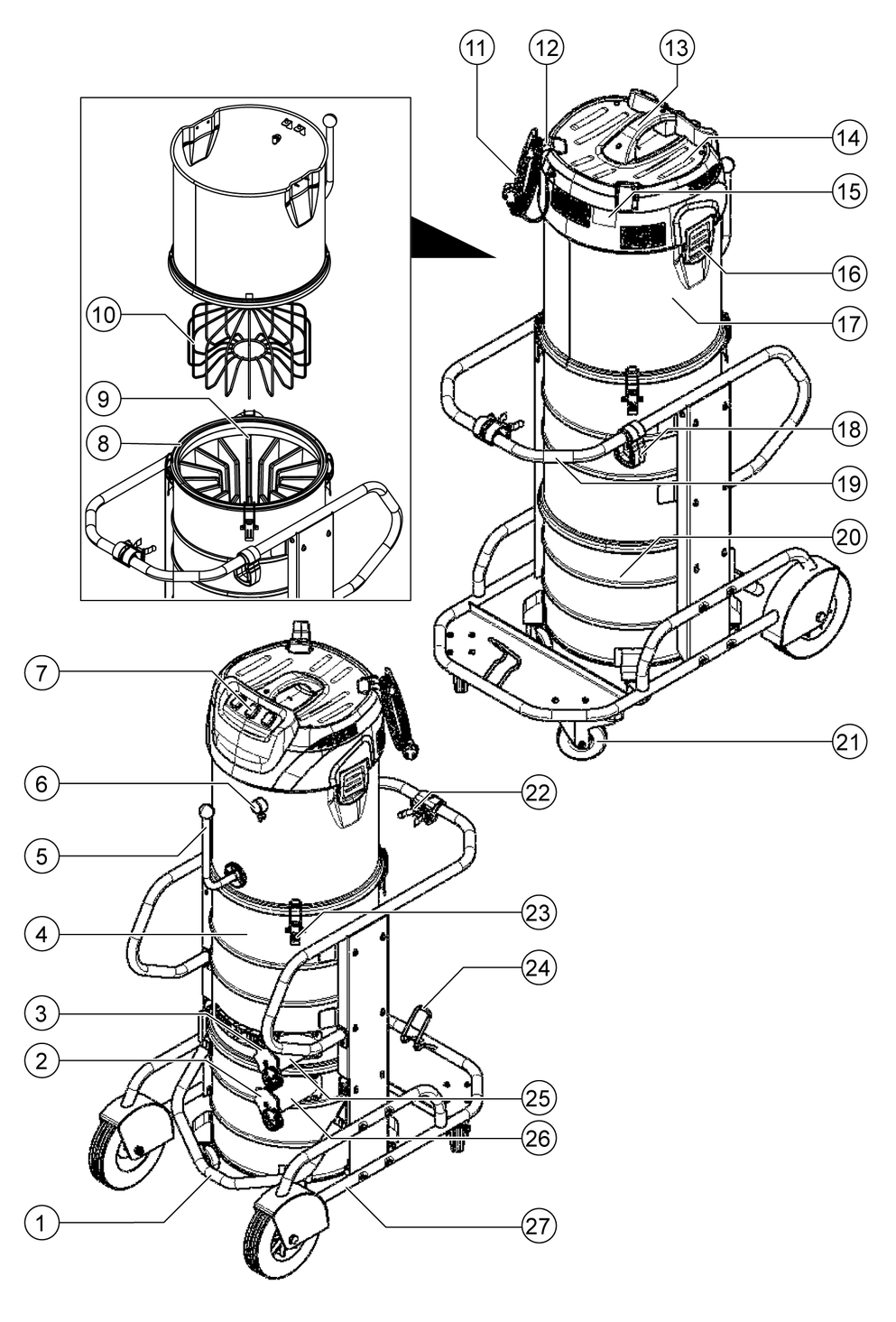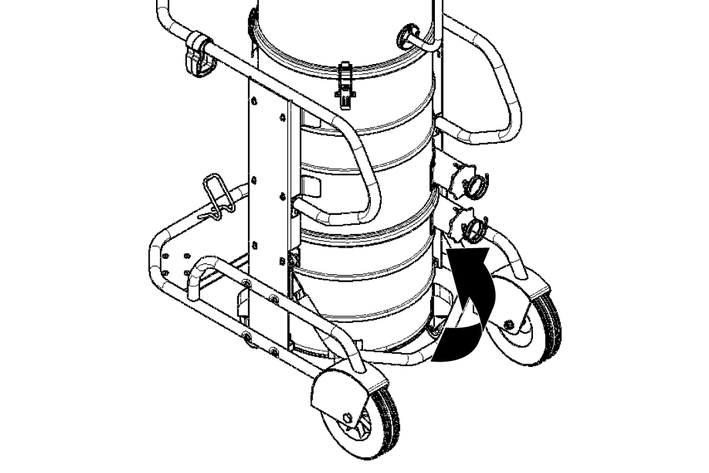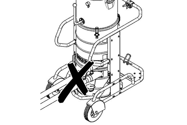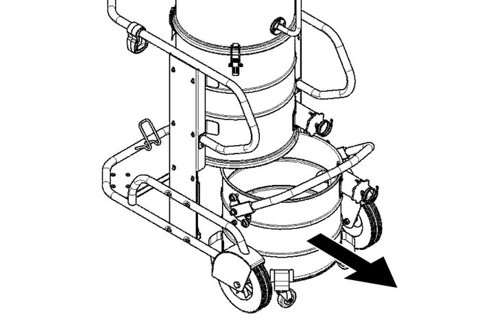 Accumulated dust must be transported in dust-proof containers. Do not transfer the contents. The dust bag may only be disposed of by qualified staff.Secure the device with the parking brakes.
