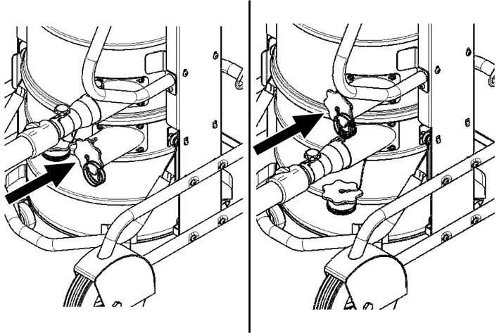 The suction hose can be plugged into 2 different suction hose ports depending on the application.