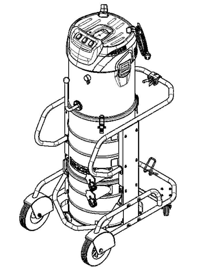 The device is an industrial vacuum cleaner for vacuuming dry, non-flammable dusts.
