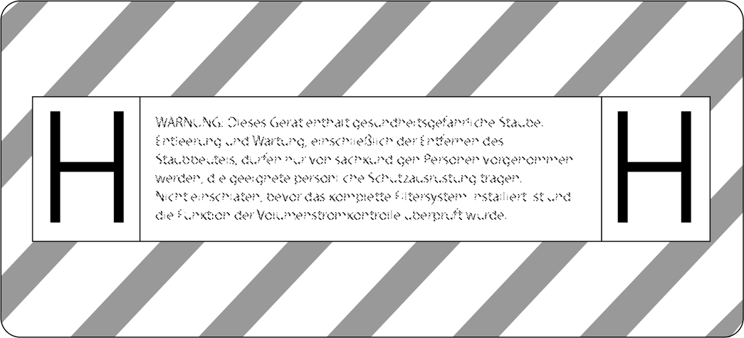 WARNING: This device contains dusts that are harmful to your health. Emptying and maintenance, including removal of the dust bag, may only be performed by appropriately trained personnel wearing suitable personal protective equipment. Do not switch on until the entire filter system has been installed and the volume flow control functionality has been checked.