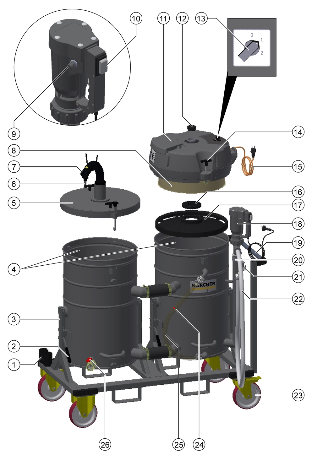 Risk of crushing! Wear gloves when removing or installing the suction head, filter inlay or collection container.